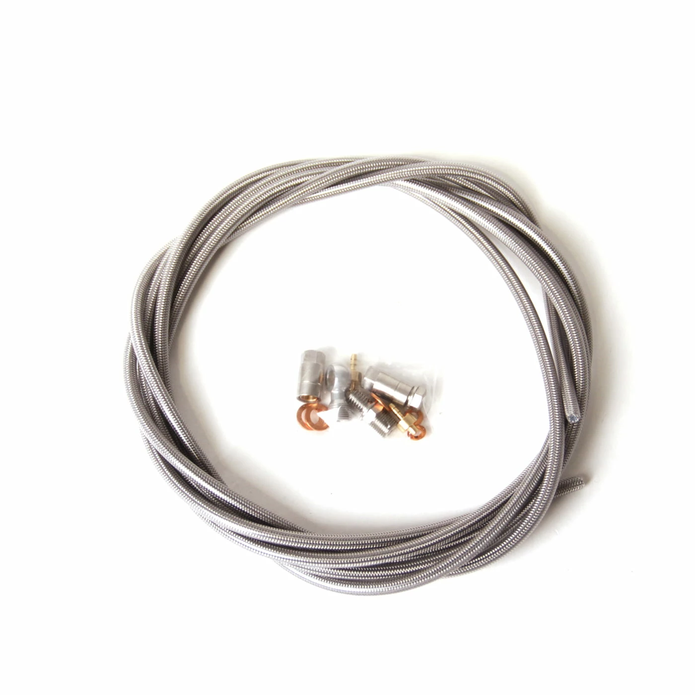 Ligne de frein tressée en acier Hope d’origine comprenant des connecteurs pour le levier de frein (0°) et l’étrier de frein (90°) et comprenant des goupilles et des olives