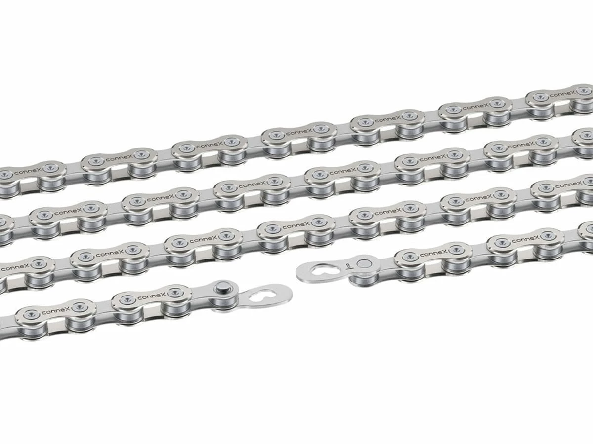 La chaîne de vélo électrique Connex 8SE de Wippermann est nickelée et peut être réglée individuellement grâce aux 124 maillons.